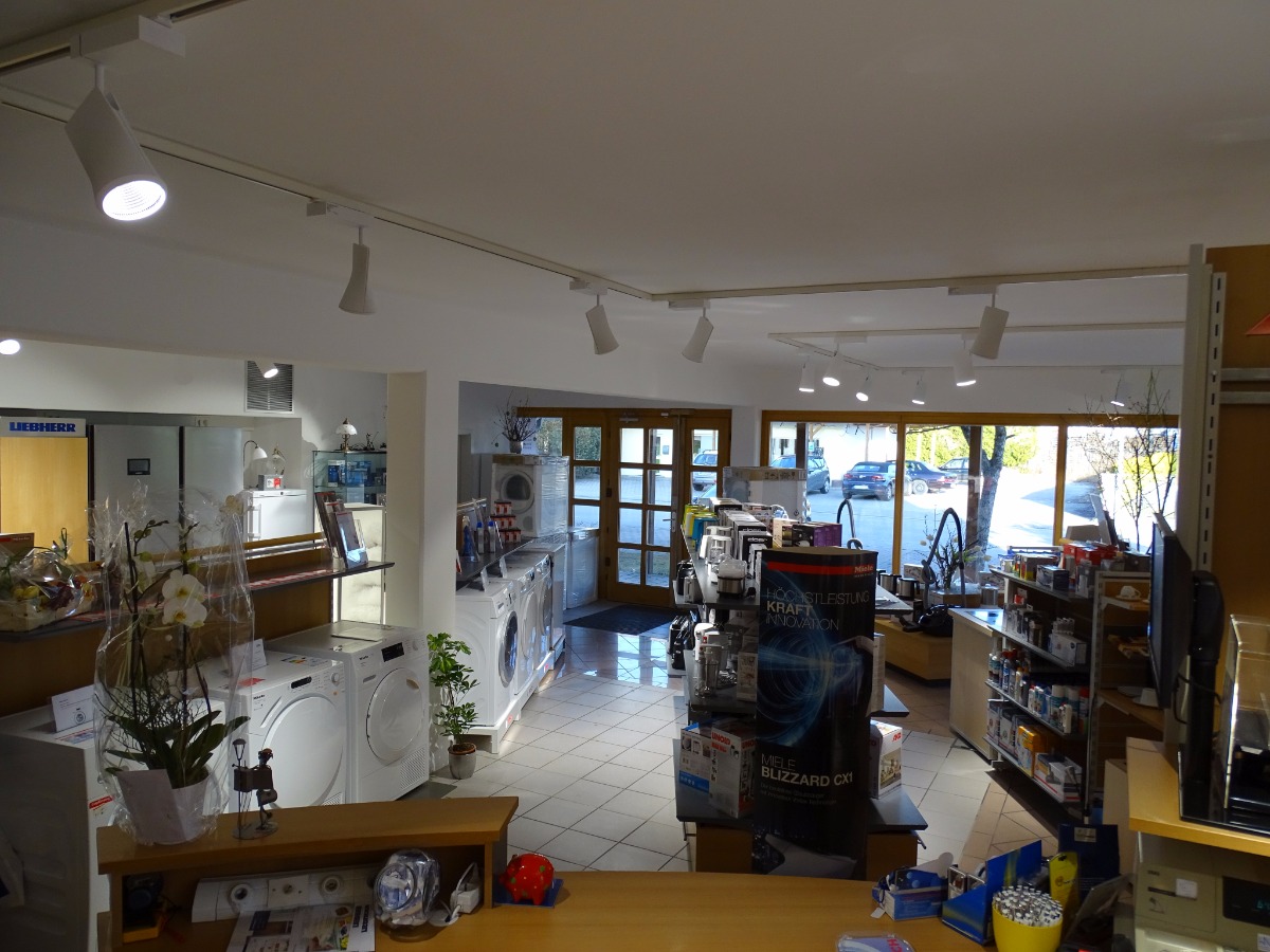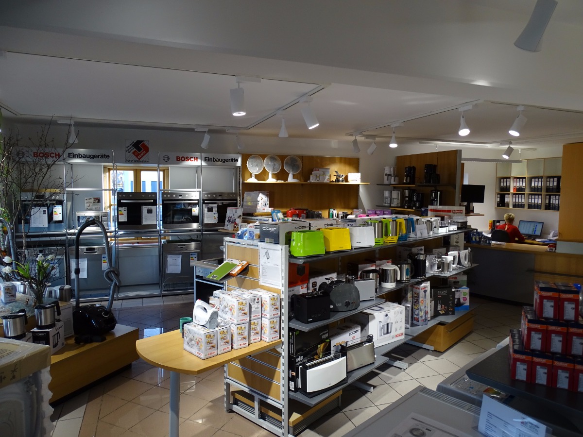 In unserem Fachgeschäft in der Bernbeurener Str. 7 in 86956 Schongau präsentieren wir Ihnen auf ca. 80 qm ausgewählte Geräte der Marken Miele, Bosch, Liebherr, TechniSat und viele mehr. Hier werden Sie von uns fachkundig beraten, können Geräte anfassen oder ausprobieren und bekommen neben Original-Zubehör und -Ersatzteilen auch wertvolle Tipps zu Pflege, Bedienung und Energieeffizienz. Über unseren elektronischen Katalog haben wir überdies Zugriff auf mehr als 100.000 Artikel, sodass wir Ihnen Ihr Wunschprodukt meist innerhalb von 24 Stunden liefern können.